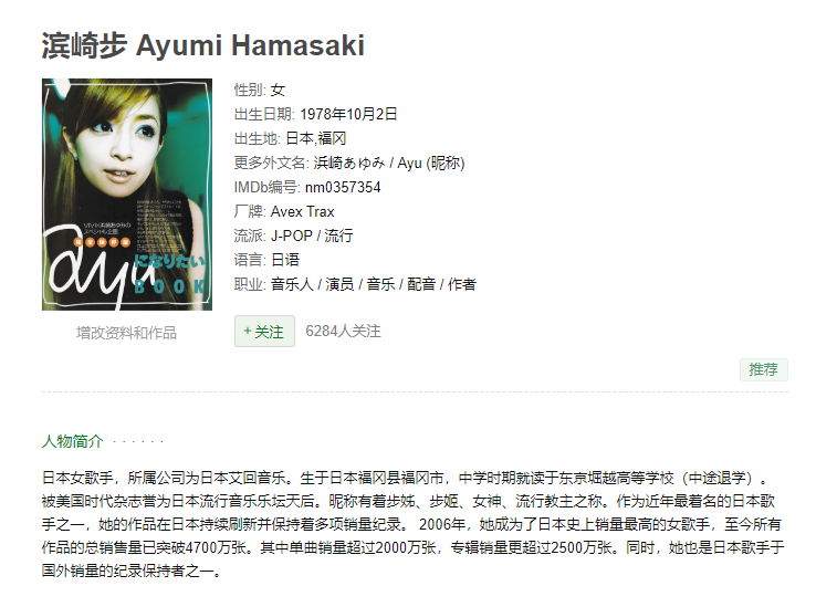 日本女歌手,所属公司为日本艾回音乐。生于日本福冈县福冈市,中学时期就读于东京堀越高等学校(中途退学)。被美国时代杂志誉为日本流行音乐乐坛天后。昵称有着步姊、步姬、女神、流行教主之称。作为近年最着名的日本歌手之一,她的作品在日本持续刷新并保持着多项销量纪录。 2006年,她成为了日本史上销量最高的女歌手,至今所有作品的总销售量已突破4700万张。其中单曲销量超过2000万张,专辑销量更超过2500万张。同时,她也是日本歌手于国外销量的纪录保持者之一。